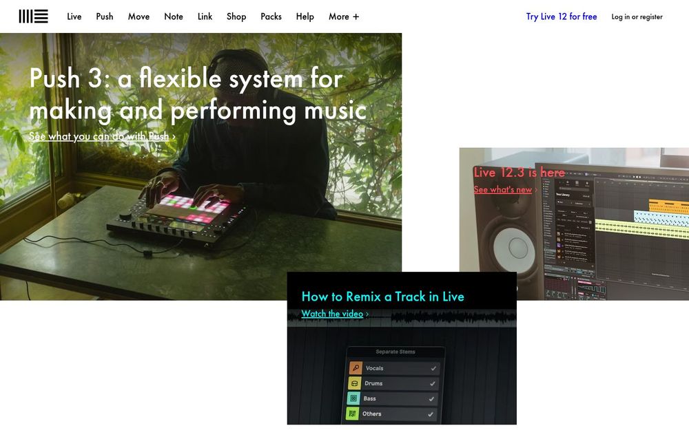 Ableton 是面向音乐创作者与表演者的创意平台,核心包含桌面软件 Live、专用硬件控制器(如 Push 3 与 Move)以及丰富的学习和社区内容。Ableton 以实时演奏与非线性工作流程著称,既适合传统的录音制作,也为电子音乐即时创作与现场表演提供强大支持。网站同时发布软件更新、教程、艺术家专题与下载资源,构建了完整的生态系统。