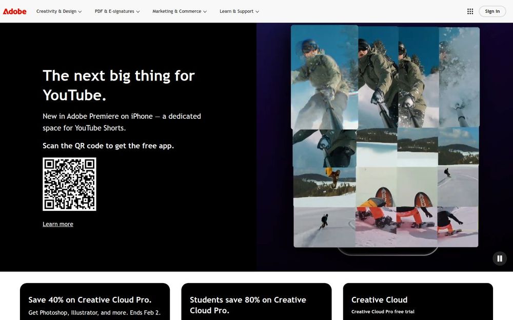 - 移动与短视频支持: 提供移动端应用(如 iPhone 版 Premiere),并推出针对 YouTube Shorts 的专用创作空间,优化短视频制作流程。