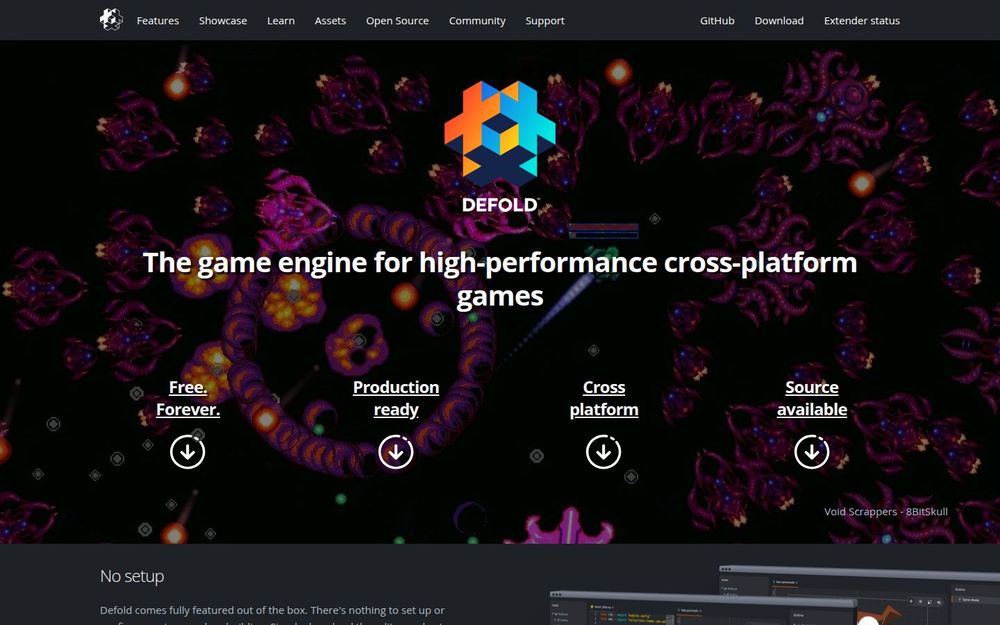 Defold 是一款为高性能跨平台游戏开发设计的轻量级引擎,提供从原型开发到发布的完整工具链。它强调零配置(No setup)、小体积运行时与高效迭代,并通过开源和基金会治理保证长期可持续性。Defold 将编辑器、脚本、构建与发布流程整合到一个一致的工作流中,适用于 2D 为主、并具备部分 3D 能力的游戏项目。