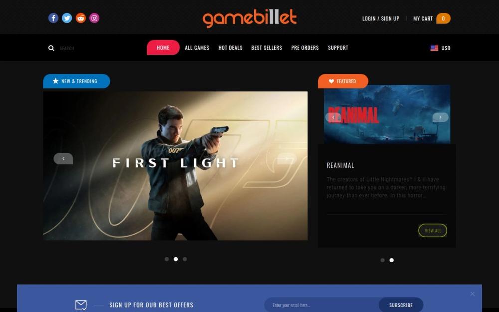 GameBillet 是一个面向全球玩家的数字游戏销售平台,专注于为 PC、Mac 和 Linux 用户提供正版游戏激活码与数字下载服务。网站以丰富的游戏目录、明确的价格与折扣信息、以及专题化的轮播与分区(如“热卖优惠”“新游”“预购”)来呈现商品,便于玩家发现新品与限时折扣。作为“Authorized Reseller(授权经销商)”,GameBillet 强调安全支付与客户支持,并在商品页展示平台兼容性(如 Steam、Rockstar)和可选版别(标准/豪华/终极版)。