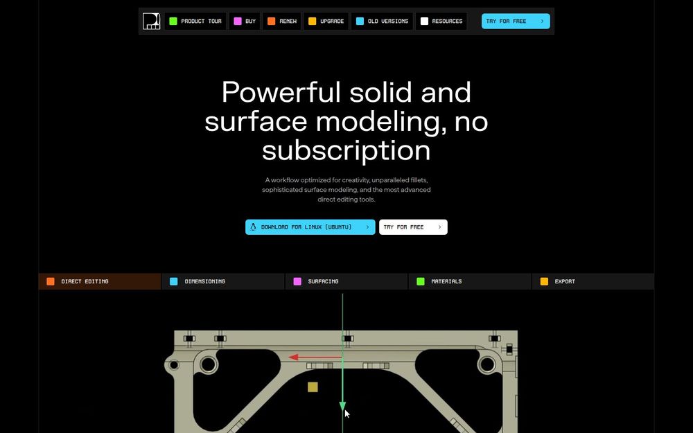 - 丰富的导入/导出: 根据许可级别支持 STEP、IGES、Parasolid、OBJ、STL、FBX 等多种格式,便于与其它 CAD/3D 工具互通,并提供 Blender 桥接。