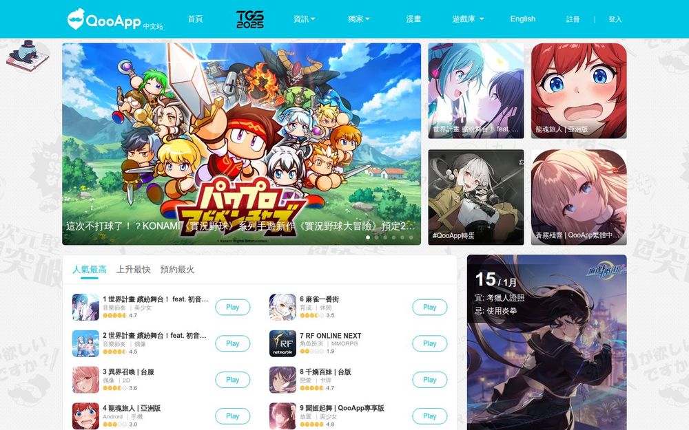 QooApp 是一個以動漫、二次元遊戲為核心的應用平台與情報網,主要聚焦於來自日本、台灣、亞洲等地的手機遊戲與相關消息。平台同時提供遊戲下載入口、各版本(如日版、繁中版、台服、亞洲版)分類、排行榜與熱度榜單,並以新聞專欄、活動推廣與社群互動補足遊戲資訊生態。對喜愛日本手遊或想取得區域版 APK 的玩家來說,QooApp 提供了便捷的索引與導流服務。