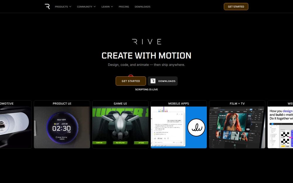 Rive 是一个用于创建交互式矢量动画与可编程视觉资产的综合平台。它将设计、编码与动画统一到一个协作编辑器中,支持通过状态机、数据绑定与脚本来描述动画逻辑,从而缩短设计师与开发者之间的沟通成本。Rive 不仅提供编辑器,还提供一整套跨平台的**运行时(Runtimes)**与高性能渲染器,使得在网页、移动端、游戏引擎与嵌入式设备上都能高效运行相同的动画文件。