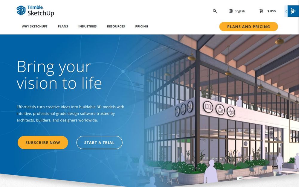 SketchUp 是由 Trimble 提供的一套面向建筑、施工、室内设计、景观与城市规划等行业的三维建模与可视化生态系统。它以直观易用的界面著称,支持在 Web、iPad 与桌面端进行建模,并通过 SketchUp Pro、Studio、Go 等订阅计划提供不同深度的专业功能。平台内置 3D Warehouse、Extension Warehouse、Scan Essentials 与 Trimble Connect 等生态组件,方便用户访问海量模型、扩展插件、导入点云和实现云端协作。SketchUp 强调快速概念化、精确建模与高质量渲染,同时配套丰富的学习资源与全球支援网络,适合从概念草图到施工交付的全流程工作。
