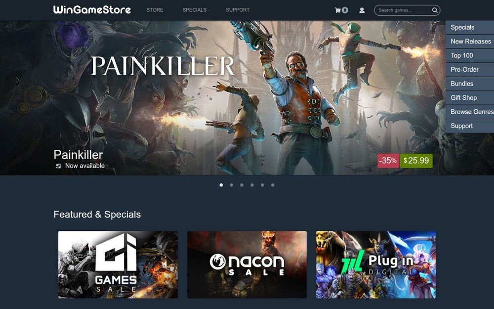 WinGameStore 是一家专注于 PC 数字游戏销售的在线商店,页面主要展示各类游戏的Steam 激活码、促销折扣、新品预购与热门榜单。网站布局以推荐位和专题展示为主,用户可以方便地浏览“Featured & Specials”“New Releases”“Pre-Orders”“Top Sellers”等栏目,快速找到折扣游戏或最新上架内容。首页还明确标注每款商品是否为Steam 激活码并显示折扣百分比与最终价格,购物流程以数字密钥方式交付为主,便于玩家即时在 Steam 上兑换与安装。